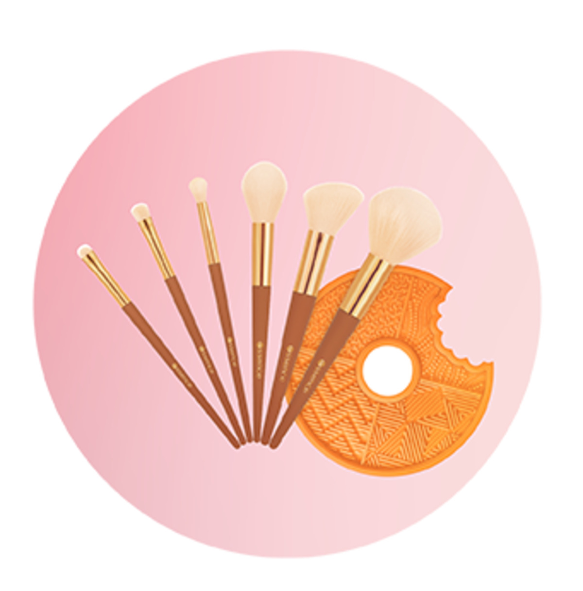 مجموعة فرش معطرة مع وسادة تنظيف. تتضمن 3 فرش للوجه للبودرة، وأحمر الخدود، والهايلايتر، و3 فرش للعيون، بالإضافة إلى وسادة تنظيف. طريقة الاستخدام: 1. ضعي الأداة في الحوض أو أمسكيها بيدك. 2. بللي الفرش وضعي عليها غسول الوجه. 3. مرري الفرش على الأداة حتى تصبح نظيفة، ثم اشطفيها بالماء.