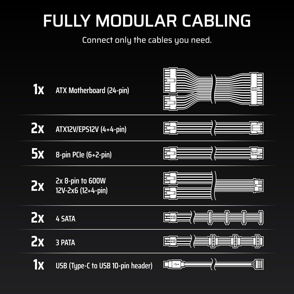 كورسير جاهز لدعم تعدد وحدات معالجة الرسوميات (Multi GPU Ready) كفاءة 80 PLUS بلاتينيوم كابلات مسطحة وسوداء مع غلاف خارجي (Sleeved and Flat Black Cables)