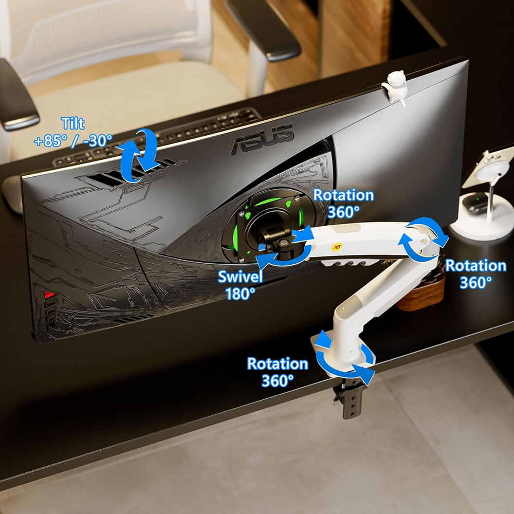 حامل مكتب بذراع واحد للشاشات NB F80-XE مقاس 17–32 بوصة، حركة كاملة، للشاشات المسطّحة، يتحمّل وزن 2–9 كجم (أبيض)
