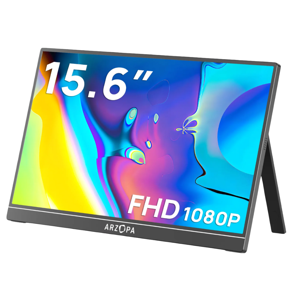 شاشة محمولة Arzopa A1 مقاس 15.6 بوصة فائقة النحافة بدقة FHD ولوحة IPS مع سماعات، USB-C وMini HDMI