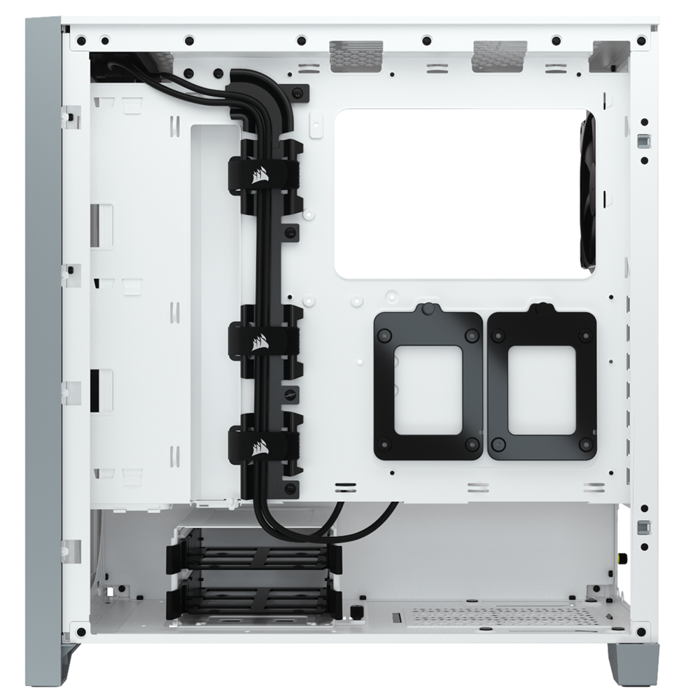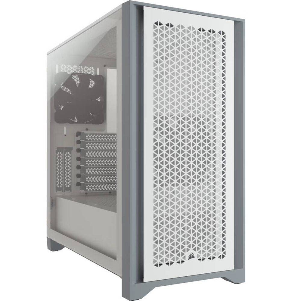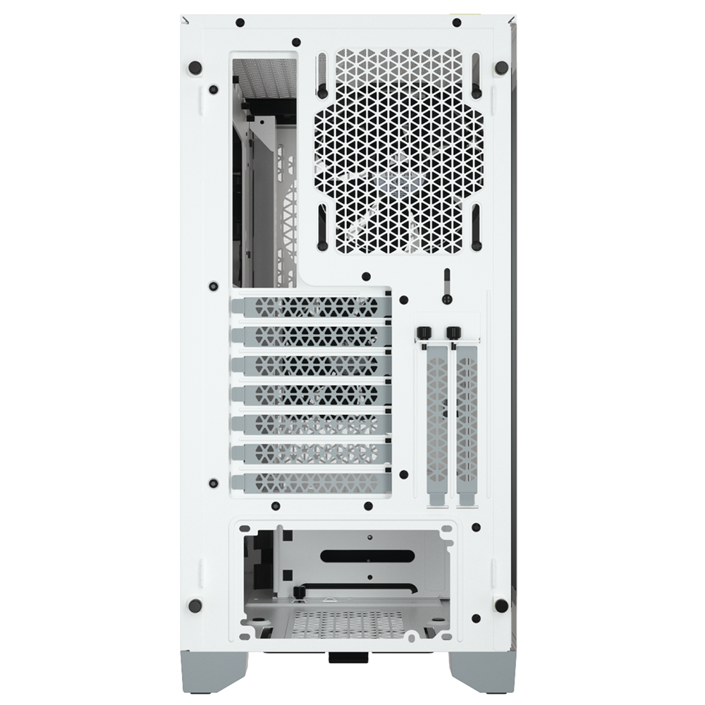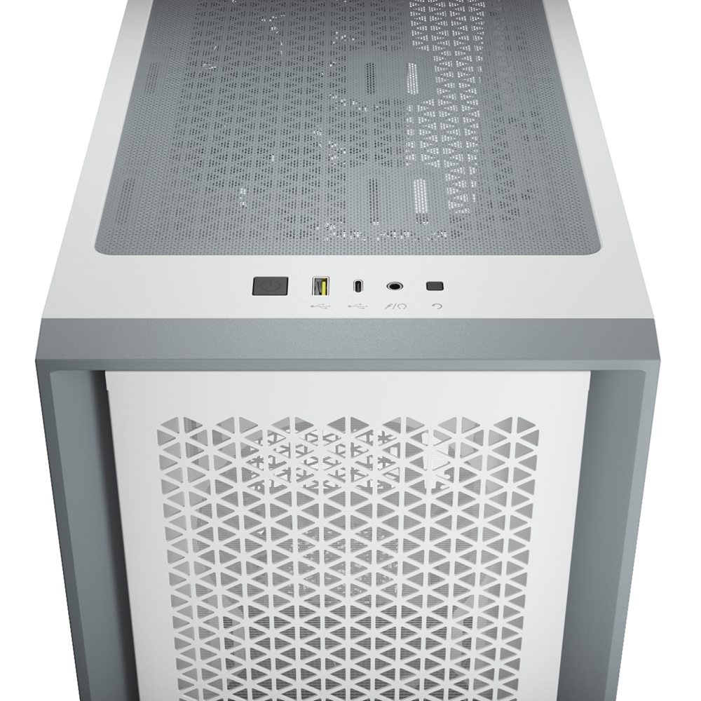 - صندوق حاسوب Corsair 4000D AIRFLOW ATX متوسط الحجم بزجاج مقسّى — أبيض، مروحتان
