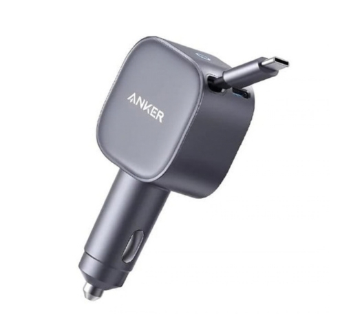 شاحن سيارة أنكر (75 واط مع كابل USB-C مدمج قابل للسحب) – رمادي