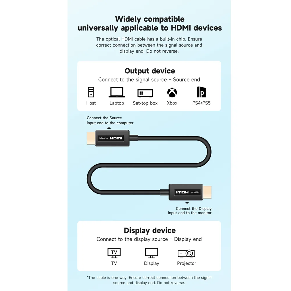كابل HDMI بالألياف الضوئية يدعم: 8K@60Hz 4K@240Hz سرعة نقل بيانات تصل إلى 48 جيجابت في الثانية