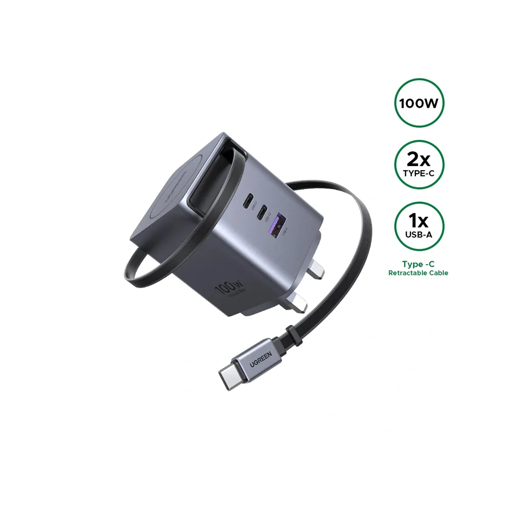UGREEN 100W Retractable USB C Charger 4-Port