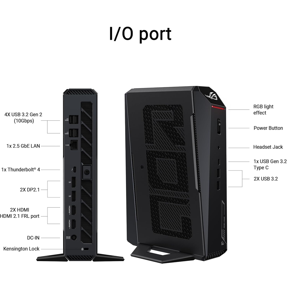 ASUS ROG NUC Nvidia Geforce RTX 5080 Laptop GPU Intel® Core™ Ultra 9 Processor 275HX 1TB Gen4 NVMe SSD (1x M.2 slot PCIe x4 Gen4) 32GB (2x 16GB) DDR5-5600 RAM (Support 48GB) 1x Thunderbolt™ 4 | 1x HDMI2.1 | 2x DP 2.1 WiFi 7 | Bluetooth 5.4 | 4x USB-A Ports Windows ®11 Home 64-bit