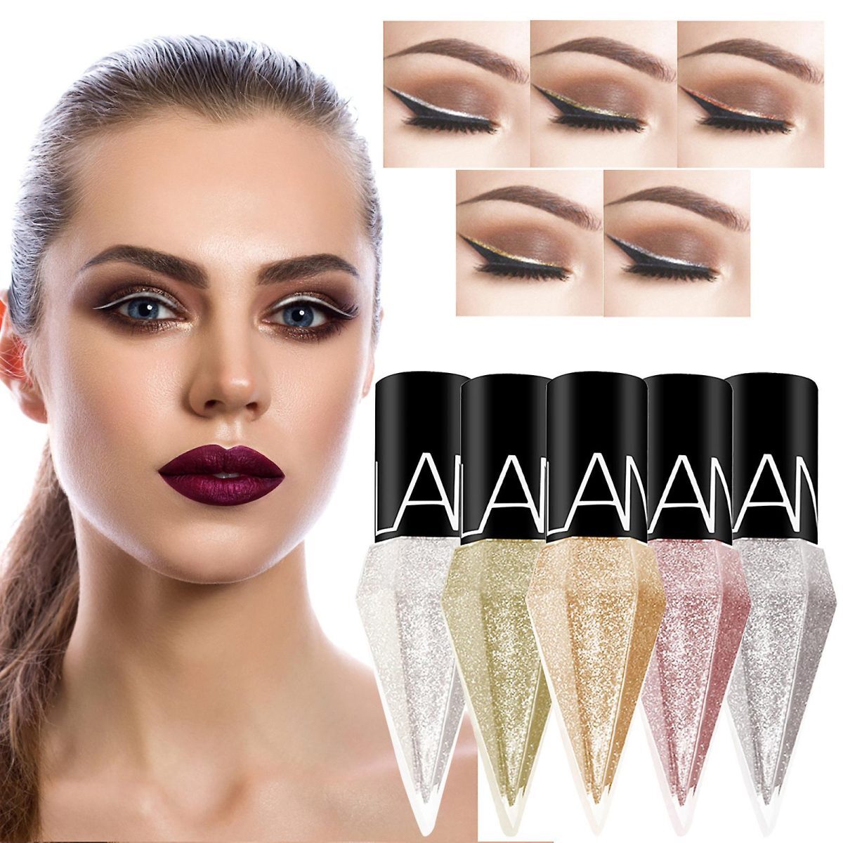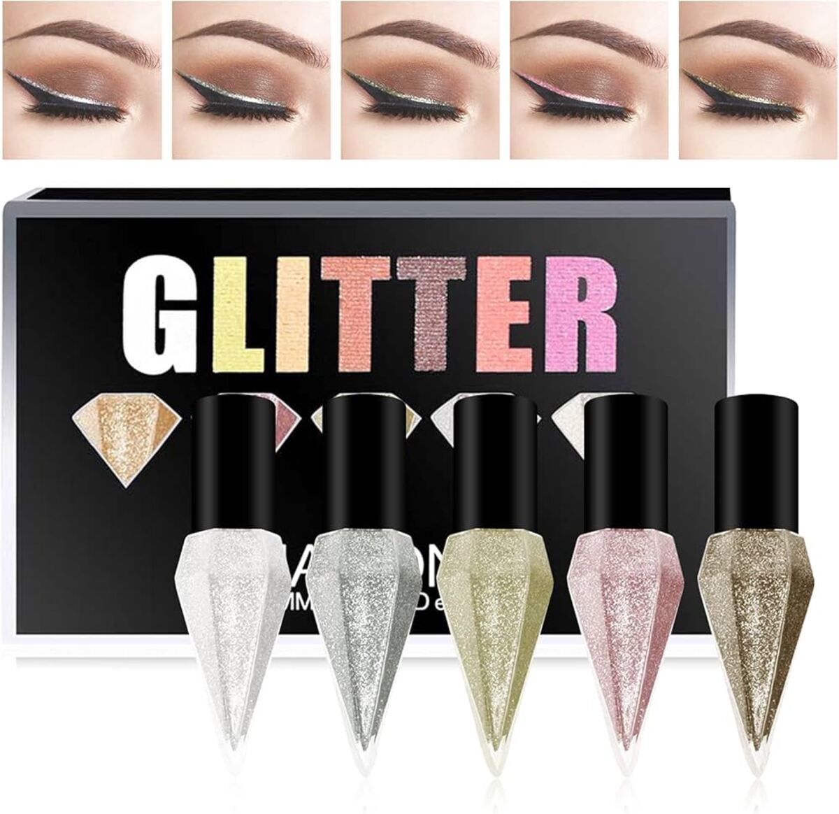 Set of 5 Sparkling Diamond Liquid Eyeliners - Ultra-thin, Waterproof, and Long-lasting, Glitter Highlighter for Eye Makeup
