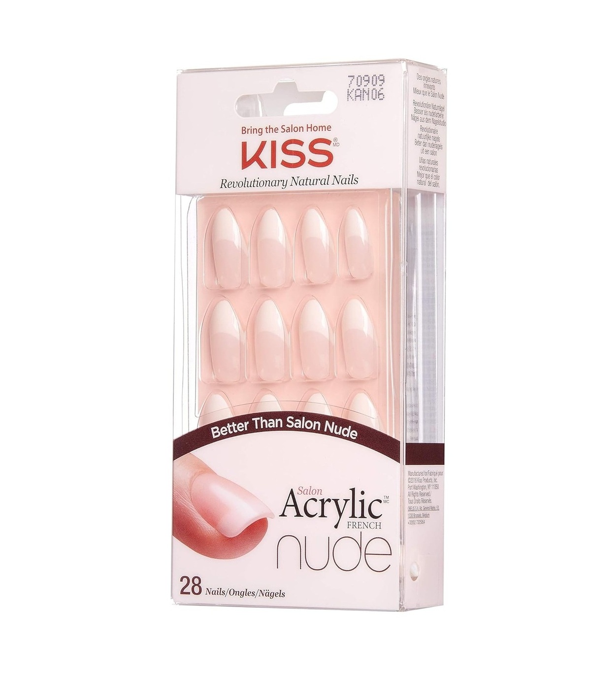 Achieve a flawless, salon-quality French manicure at home with Kiss Salon Acrylic Nude French Nails. These ready-to-wear nails feature a natural nude base with a classic French tip and durable acrylic strength for long-lasting wear. Perfect for an elegant and polished look in minutes. Benefits: Includes 28 acrylic nude French nails for a quick and easy manicure. Natural, salon-quality French tip design. Strong acrylic strength for long-lasting wear. Easy to apply for an instant manicure. Nude base with a timeless French tip for a chic appearance. How to Use: 1. Select the correct size nail for each finger. 2. Apply glue to the back of the artificial nail and your natural nail. 3. Press firmly and hold for a few seconds.