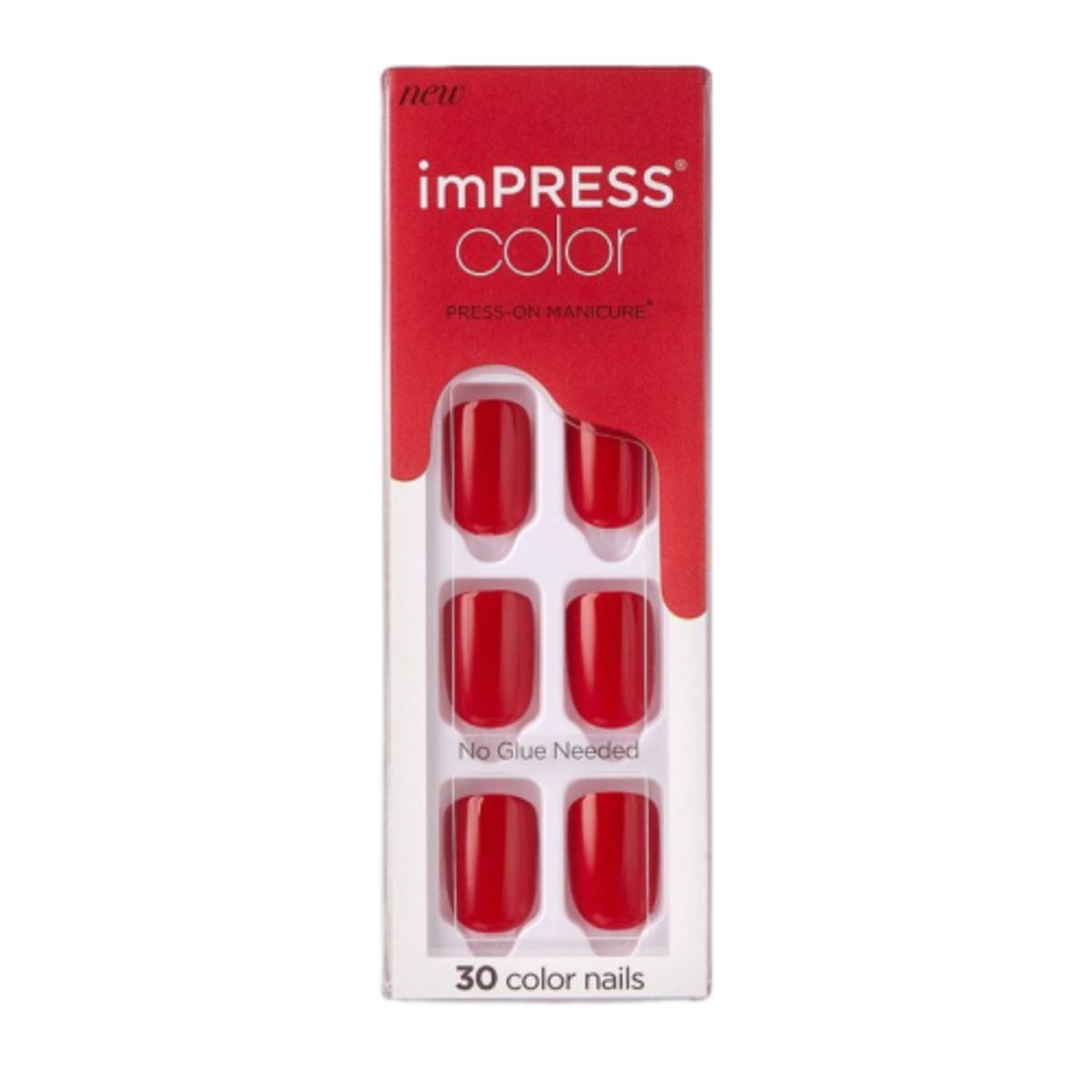 Achieve a salon-quality manicure at home with Kiss Impress Color Short Nails. This set includes 30 pre-designed nails in a variety of sizes, perfect for a quick and easy manicure. The short length provides a natural yet polished look, and the vibrant color adds a pop of style to your nails. No glue is needed—simply press on for a long-lasting, beautiful finish. Benefits: 30 nails in various sizes for a custom fit. Vibrant, colorful nails that add style and flair. Short length for a natural, everyday look. No glue needed for easy application. Long-lasting and chip-resistant. Texture: Smooth surface with a glossy, polished finish. Finish: Shiny and sleek, giving nails a fresh, vibrant look. How to Use: 1. Clean and prep your natural nails by removing any polish or oils. 2. Select the right size for each nail. 3. Peel off the adhesive backing and press the nails firmly onto your natural nails. 4. Hold for a few seconds to ensure a secure fit. File and shape if necessary for a perfect finish.