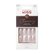 PREP: Clean nails with nail polish remover and wash hands thoroughly with soap; select correct size nail for each finger and set aside in order. Nails are sized by number, noted underneath nail. • GLUE: Apply glue to back of artificial nail. Apply glue to natural nail. Align with cuticle, gently press on & hold for 5 seconds. EXPERT TIP: Apply enough glue to avoid air pockets, secure adhesion, and extend wear. REMOVAL: Trim & file surface to disrupt protective top coat. Soak nails in acetone polish remover until soft. Wipe off softened nails & glue. Do not force or pull nails off. • For glitter nails: Glitter may cause an uneven edge; use enclosed file to gently file smooth.