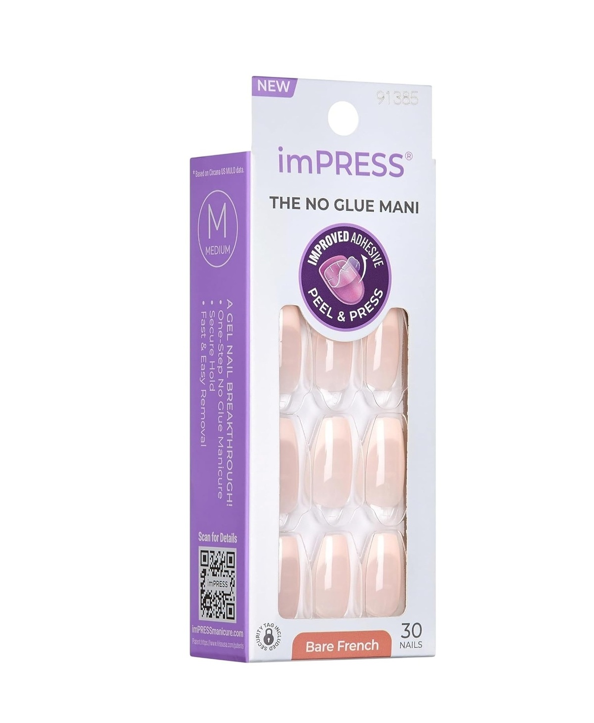 imPRESS is now relaunched with a new patented “SuperHold Technology”. The new technology involves a double layer of adhesive for even better hold. The improvements also mean that the flexible false nail adheres more naturally to the natural nail. The upgraded technology provides an even smoother transition to the cuticle, which in turn gives a perfect result. The press-on nails last up to 7 days. Just peel, press & go!