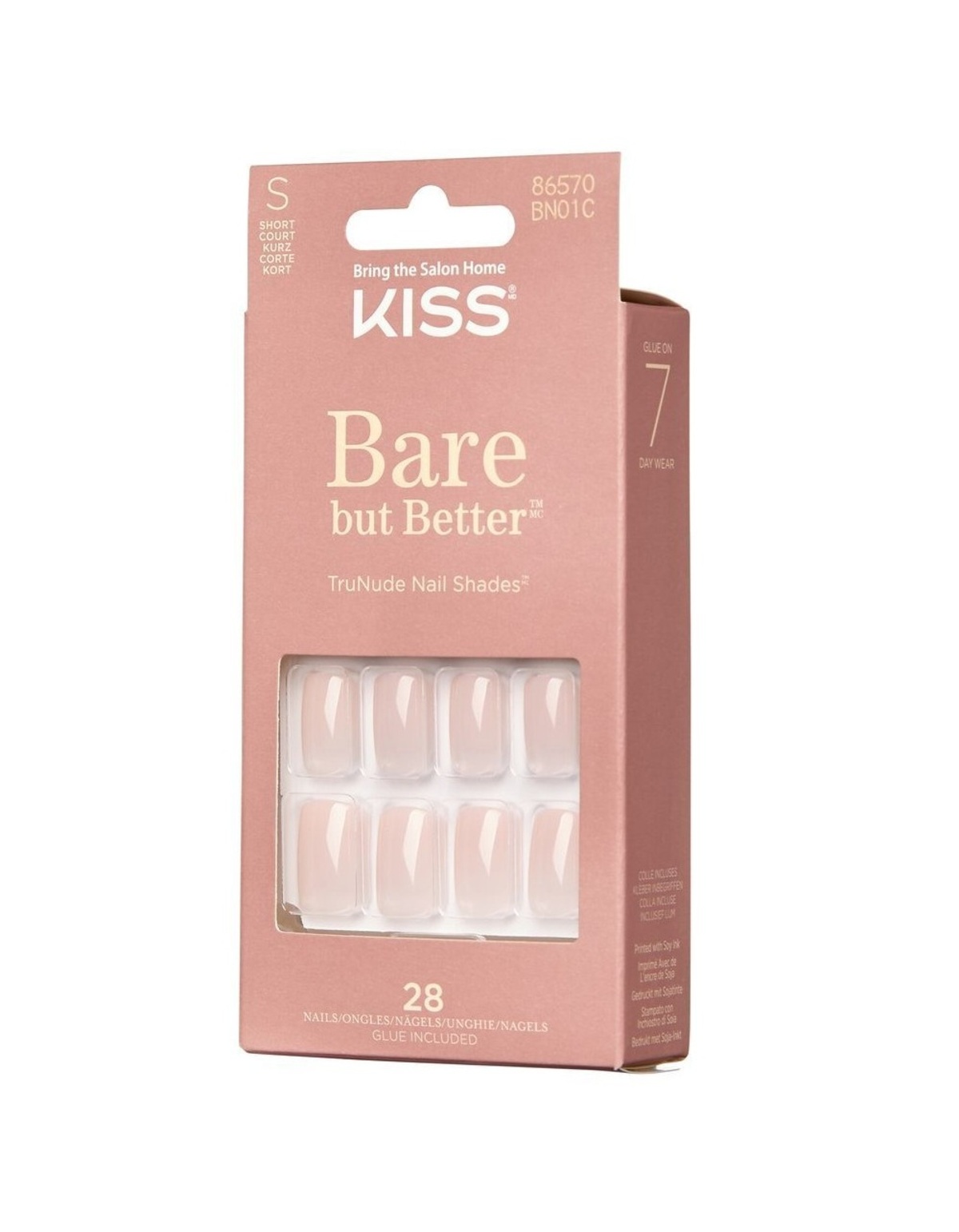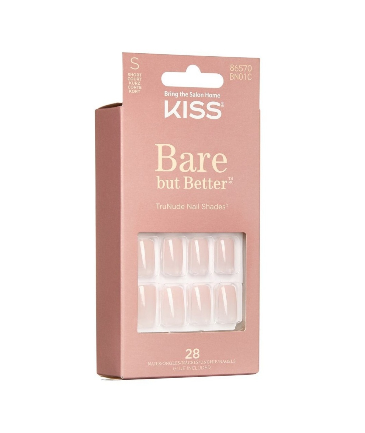 KISS takes the “no makeup” look a step further with new Bare but Better TruNude Fake Nails. Now you can skip the salon and choose your favorite nude shade. Bare but Better false nails flatter every skin tone and take only minutes to apply. The nude nail trend is here! Numerous diverse nude shade choices offer you a perfect match, or you can go a shade lighter or darker than your natural skin tone. High volume ready-to-wear gel nails look professionally done, but it's so easy to DIY!