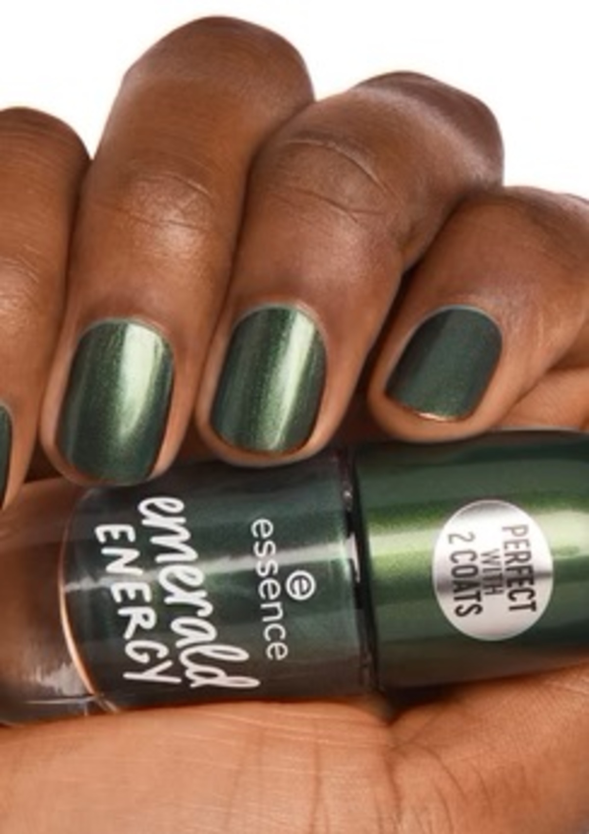 Get this professional manicure with essence gel nail color 73 emerald ENERGY. The nail polish is available in an emerald green shade with an iridescent effect and is ideal for sunny autumn days. Thanks to the "double touch brush", you will achieve a smooth and even application with just a few movements. Seal the polish with a top coat to make it last even longer.