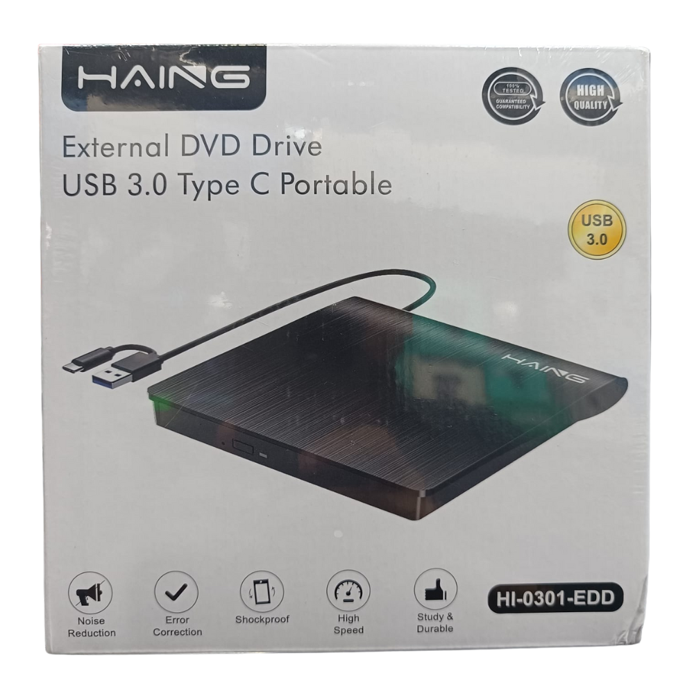 Haing External DVD Drive Dual Port USB-A 3.0 / USB-C Portable Burner Writer