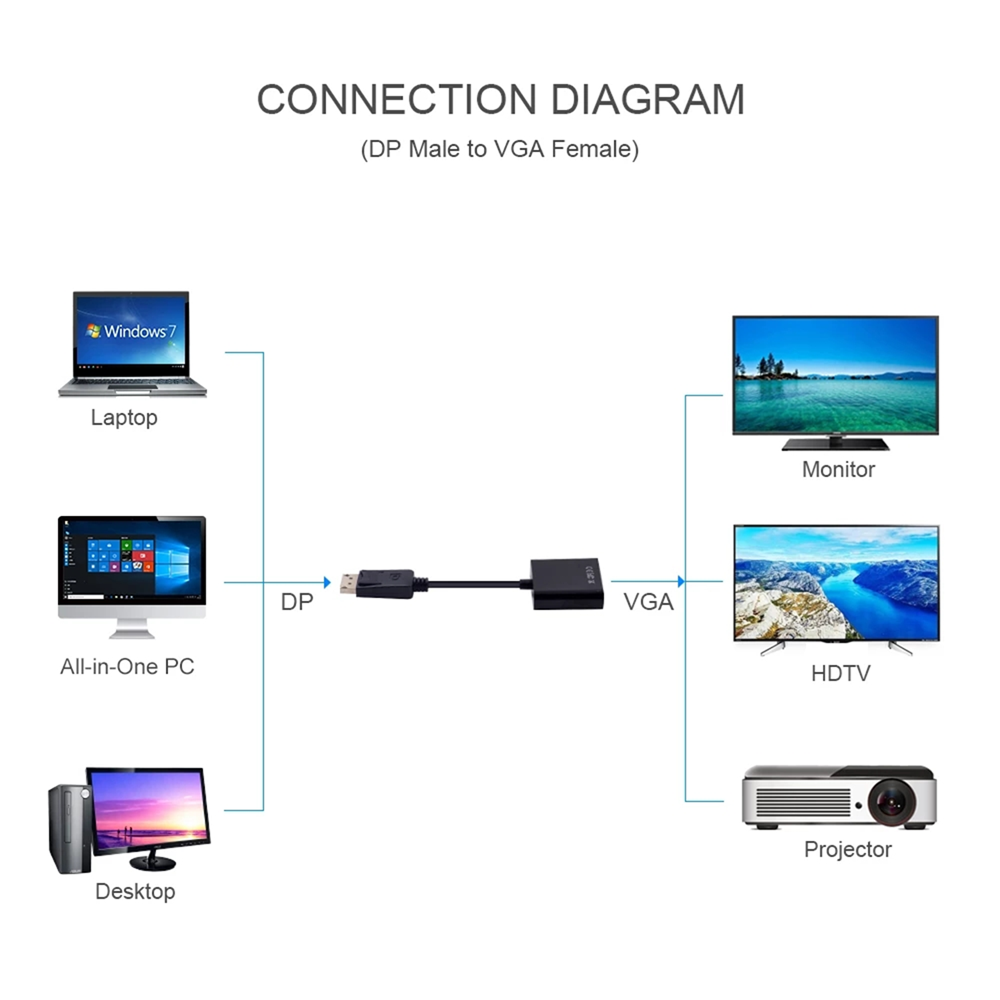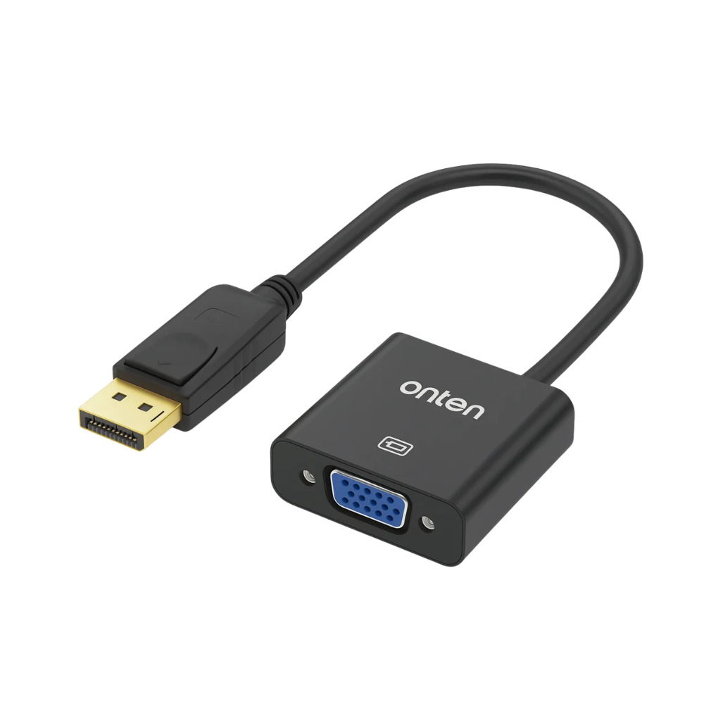 The Onten OTN-5118 adapter converts DisplayPort signals to VGA output with Full HD 1080p resolution. Ideal for connecting laptops or PCs to VGA monitors and projectors. Plug & play functionality with support for Windows, macOS, and Linux – no driver installation required.